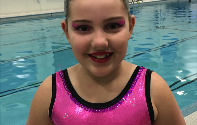 Tegan is our our 10U Red Novice team. Coach Ev says Tegan is an extremely hard working athlete. This, and her great dedication has allowed her to improve immensely throughout this season. Tegan always has the biggest smile at practice and brings a positive attitude to the pool everyday. She has made huge progress on her basic positions, especially her bent knee! Best of luck at Novice Championships this coming weekend.