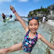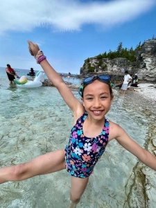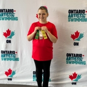Oliver is a member of our 12U Green team. Oliver comes to practice early each day with a big smile and lots of enthusiasm. They have high energy and never complain about swimming lengths during warm up! Oliver is always smiling and enthusiastic for both figures and routine practice. Coach Jody says their verticals and fishtails have improved immensely this year, and Oliver is continuing to work on extension.