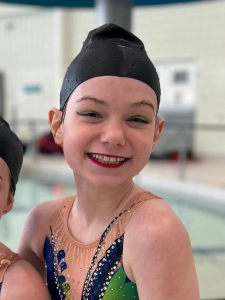 Eiry is a member of our 10U RL Blue team. Eiry comes to every practice excited to try new skills, and actively seeks coach feedback to help herself improve. She has shown significant effort in improving her flexibility in and out of the pool, and is very proactive in knowing her routine counts. Coach Julianna is very impressed with Eiry’s “can-do” attitude, and looks forward to every practice with her.